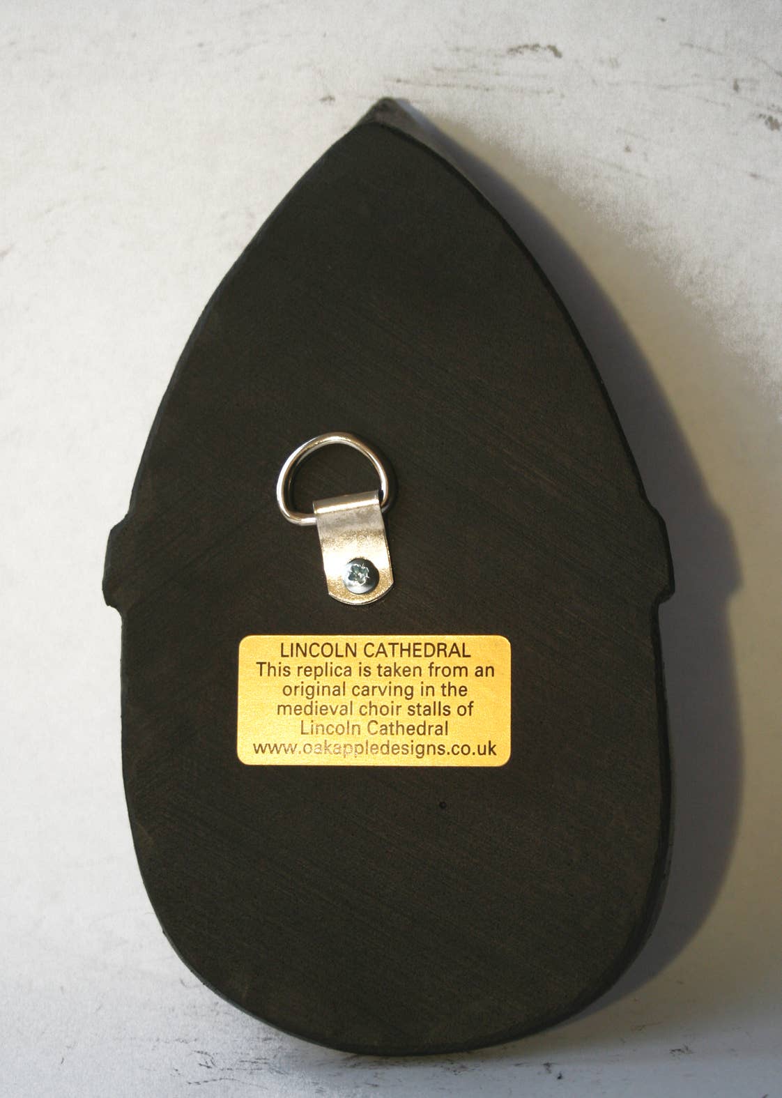 One of our unique and exclusive designs from our collection of hand crafted reproduction carvings which are taken directly from an original medieval Cathedral carving. We pride ourselves with having permission to take moulds directly from the medieval carvings found upon the misericords and choir stalls from within the Cathedrals of the UK. Our moulds and production techniques capture and reproduce all the fine detail from the original carvings to produce a very high-quality piece with all the authenticity from the original carving.